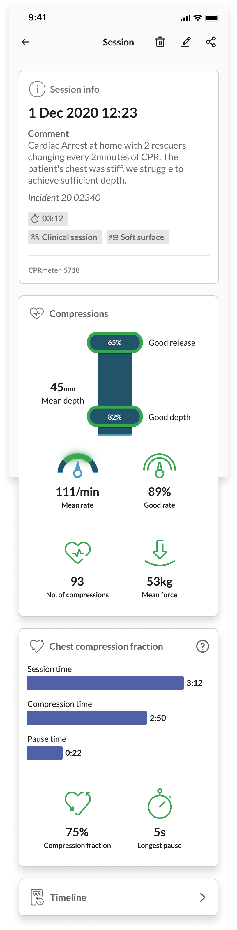 As the UX/UI designer for the CPRmeter App, I transformed user needs into a digital solution, integrating data from the CPRmeter 2 device. Following the medical device design process, I led the project from design and development through to launch.